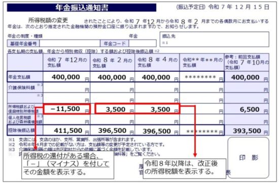 令和7年に限り、12月の年金支払い時に改正後の基礎控除額を用いて